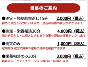 (初回の方にオススメの 測定+簡易結果返し15分 2000円(税込)のコースです。)